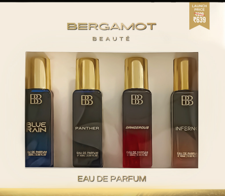 Discover luxury with the Bergamot Beauté Eau de Parfum Gift Set, featuring four signature fragrances crafted to match different personalities and occasions. Whether you want to feel fresh, bold, mysterious, or fiery – this set has it all. Perfect as a personal indulgence or a premium gift.