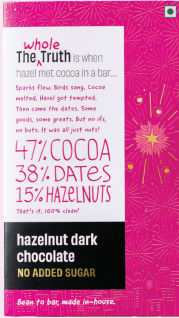 chocolate| Hazelnut Dark Chocolate Bar - 47% Cocoa, No Added Sugar, Enriched with Dates & Nuts | Gourmet Sugar-Free Chocolate