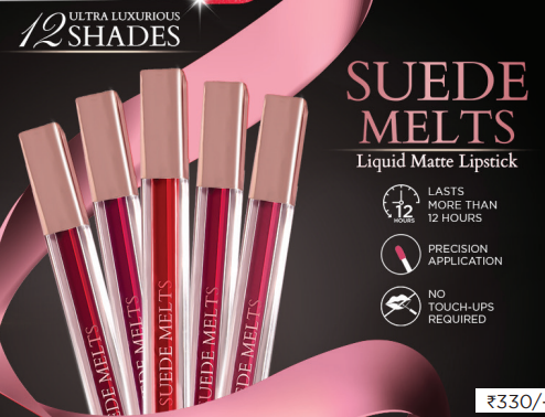 The Suede Melts Liquid Matte Lipstick Collection brings you 12 ultra-luxurious shades, designed to match every mood, outfit, and occasion. With its highly pigmented formula, lightweight texture, and smudge-proof wear, this collection ensures your lips stay bold and beautiful all day long.
