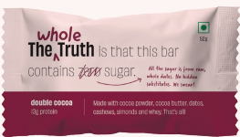 double cocoa protein bar, vegan chocolate snack india, dark cocoa protein bar, sugar-free chocolate indulgence, gym chocolate bar, healthy dessert replacement