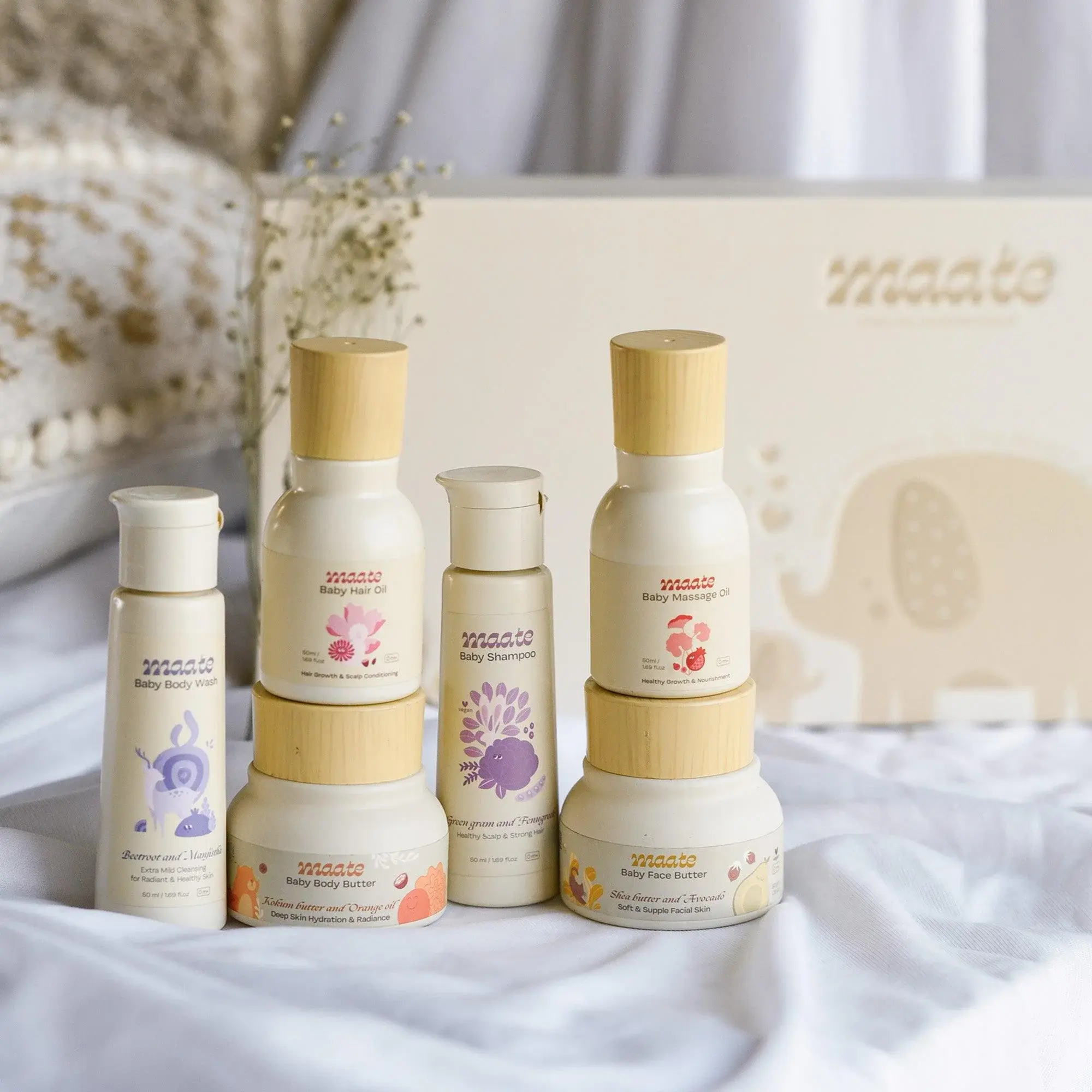 - 1 x Maate Baby Wellness Gift Box (Includes assorted baby care essentials)